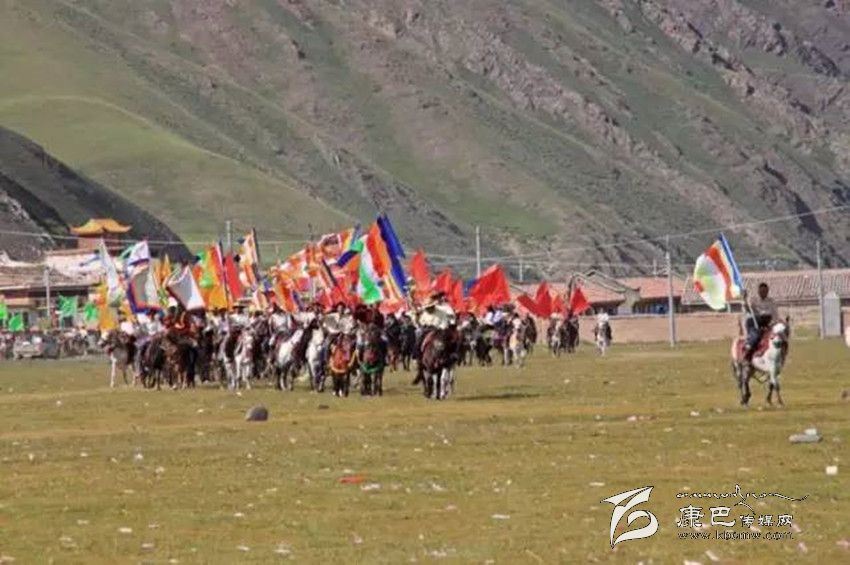 藏歷五月初四,就是色達(dá)牧民的祭神節(jié)。這天,牧民們?cè)诟魃忌嫌∩舷笳鞲獾慕?jīng)文,在經(jīng)旗周邊裝飾上白、紅、黃、綠、蘭布條。男子在自己的火槍槍架上,飾以經(jīng)幡,上邊掛一緞制煙祭用的小袋騎馬趕赴節(jié)日集會(huì)地點(diǎn)。
