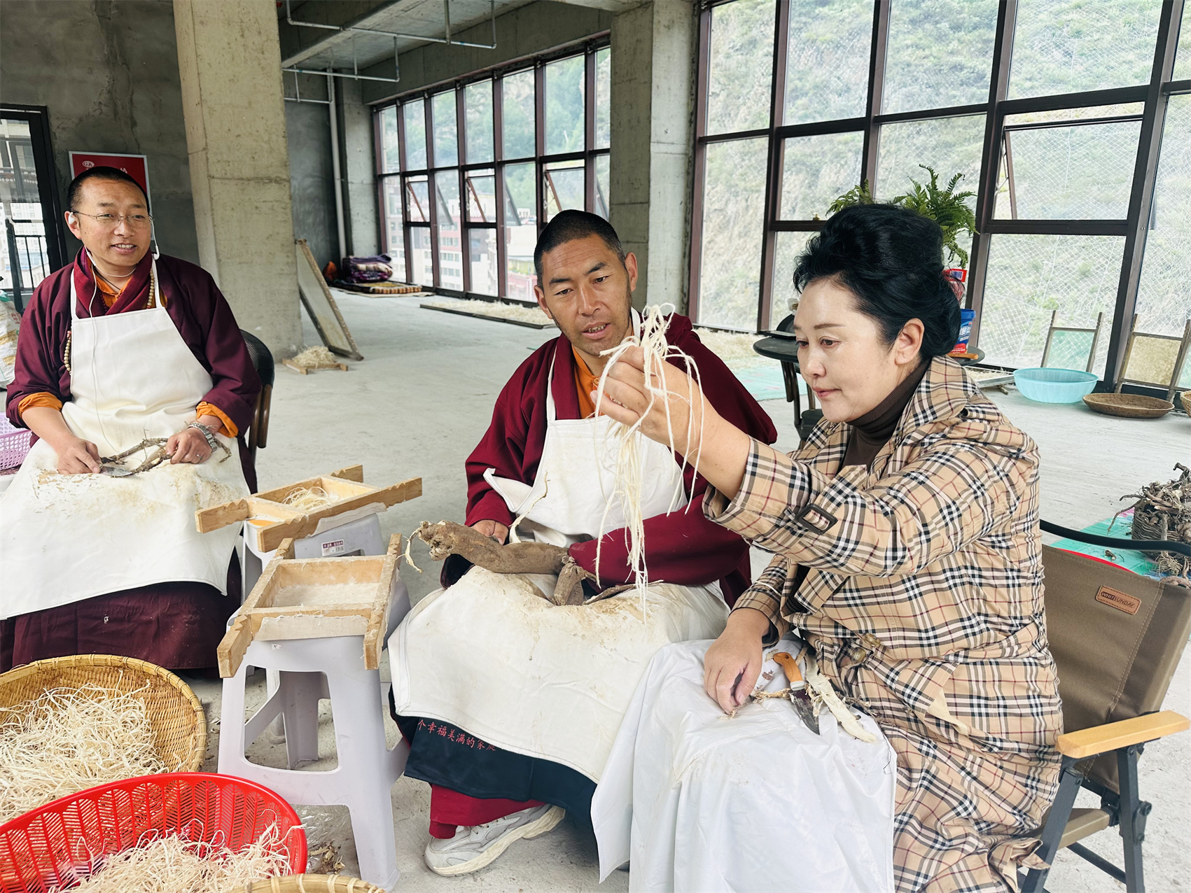 “充巴姐教我做藏紙,每個(gè)月還給我發(fā)3000元的基本工資,要是誰家有困難,她也總是解囊相助?!弊鳛榈赂癫丶堉谱鞯馁Y深學(xué)生,翁姆直言藏紙技藝讓自己收獲頗豐。