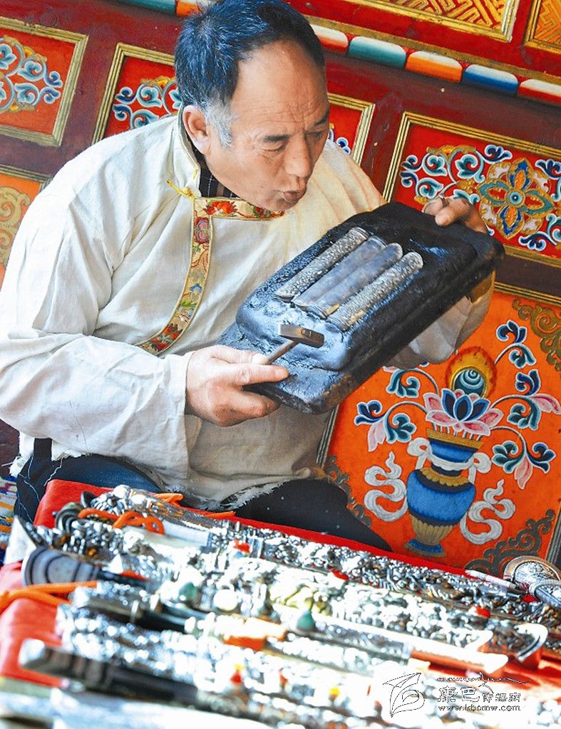 作為省級(jí)非遺項(xiàng)目“白玉河坡藏族金屬鍛造技藝”代表性傳承人,呷確·曲登的藏刀鍛造手藝遠(yuǎn)近聞名,經(jīng)常有外地游人前來(lái)拜訪和購(gòu)買(mǎi)。“聽(tīng)長(zhǎng)輩說(shuō),我們家族第一代傳人,就是格薩爾王時(shí)期著名工匠呷西青甲布。”