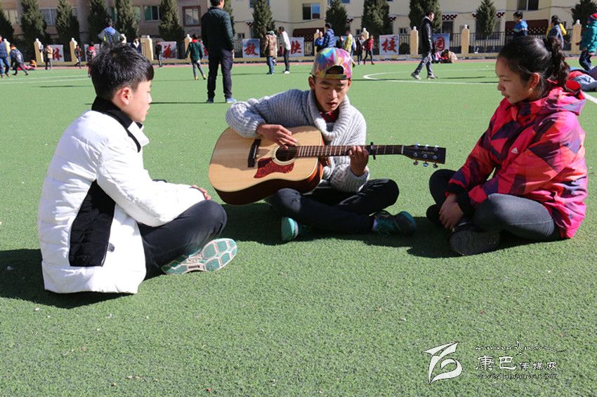 “白云下一座溜溜的城/聽(tīng)著溜溜的歌聲/李家那溜溜的大姐喲/溜溜愛(ài)上藏家大哥喲/尋夢(mèng)在溜溜的跑馬山/我推著金桶溜溜轉(zhuǎn)/折多河溜溜穿城過(guò)喲/頌經(jīng)聲溜溜的傳承喲/悠揚(yáng)琴聲在溜溜小城/我溜溜等待著愛(ài)人/跑馬山龍打溜溜撒喲/心就在溜溜城中活……”最近一首名叫《溜溜》的歌曲刷爆了記者的朋友圈,不到一天的時(shí)間點(diǎn)擊率達(dá)到12000多,干凈的嗓音碰上吉他、貝斯等流行元素,給聽(tīng)眾帶了一種不同的音樂(lè)享受?!读锪铩返脑~曲作者周麒(當(dāng)然他也是原唱之一)和主唱昂汪央金拉姆、周楠都是來(lái)自康定中學(xué)的學(xué)生,在冬日的午后,記者在康定中學(xué)的籃球場(chǎng)見(jiàn)到了這三位一臉天真的原創(chuàng)者。初見(jiàn)記者,他們還有一些靦腆、緊張,但是一談到音樂(lè),他們立刻有了說(shuō)不完的話。