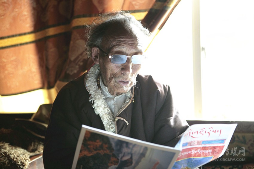 彭措郎加正在閱讀本報(bào)的《康巴印畫》雜志。