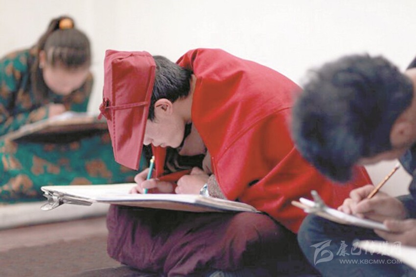 澤吉拉姆今年17歲,來學(xué)畫唐卡已經(jīng)兩年。每天清早天剛亮,她便盤腿坐在地上用心地為自己所畫的一副“五部文書”上色。據(jù)擁忠洛吾介紹,學(xué)習(xí)唐卡繪畫會磨練一個人的意志力,過程枯燥而漫長,一般6年左右才能出師。而對澤吉拉姆而言,她一點兒都不覺得苦,她說,她就是喜歡畫唐卡,這種喜歡仿佛與生俱來。她的妹妹現(xiàn)在也在這里學(xué)畫唐卡。