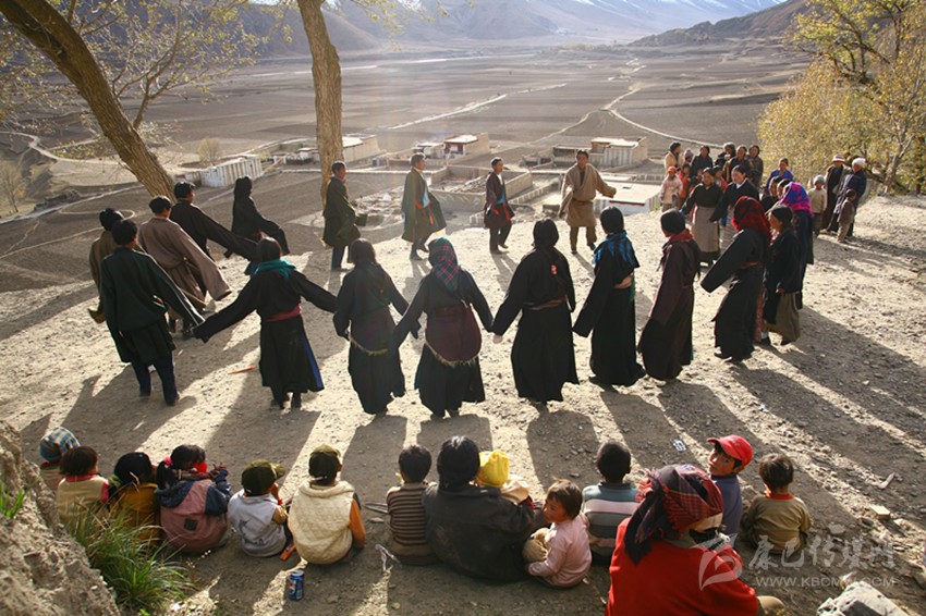 弦子又名為“協(xié)”,在甘孜縣境內(nèi)有孔薩協(xié)欽、仲薩協(xié)、格達(dá)協(xié)、郎扎協(xié)等,其中白利寺五世格達(dá)活佛創(chuàng)建于二十世紀(jì)三、四十年代的格達(dá)弦子尤為著名,跳此舞無時(shí)間規(guī)定。起初用此歌祭祀亡魂、超度靈魂、免荒災(zāi)。以后逐漸豐富其內(nèi)容而流傳于民間。表演時(shí)無伴奏樂器,起舞時(shí),男女兩隊(duì)輪歌共舞,圍成圓圈,相對(duì)而立,男女舞者統(tǒng)一著樸素藏裝,男舞者抬頭,頭戴金氈帽, 身著“氆氌”衣,但不配戴腰刀;女舞者低頭,扎小辮子,身著“氆氌”衣,腳穿藏鞋,沿著弧線,先慢后快,邊歌邊舞,舞蹈的腳步動(dòng)作矯健,帶有“夏卓”的風(fēng)韻。格達(dá)活佛的詩(shī)歌,具有藏族文學(xué)的新內(nèi)容和新思想,每當(dāng)節(jié)日人們就在優(yōu)美的旋律中盡情起舞,格達(dá)弦子的詞、曲均由格達(dá)活佛創(chuàng)作。