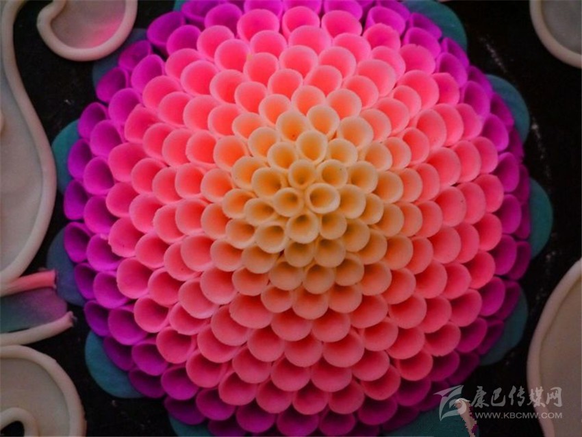 在青海塔爾寺,有一座酥油花館,陳列著僧人們巧手創(chuàng)作的多姿多彩的酥油花。它與堆繡、壁畫和磚雕一起,被譽為塔爾寺“四絕”。