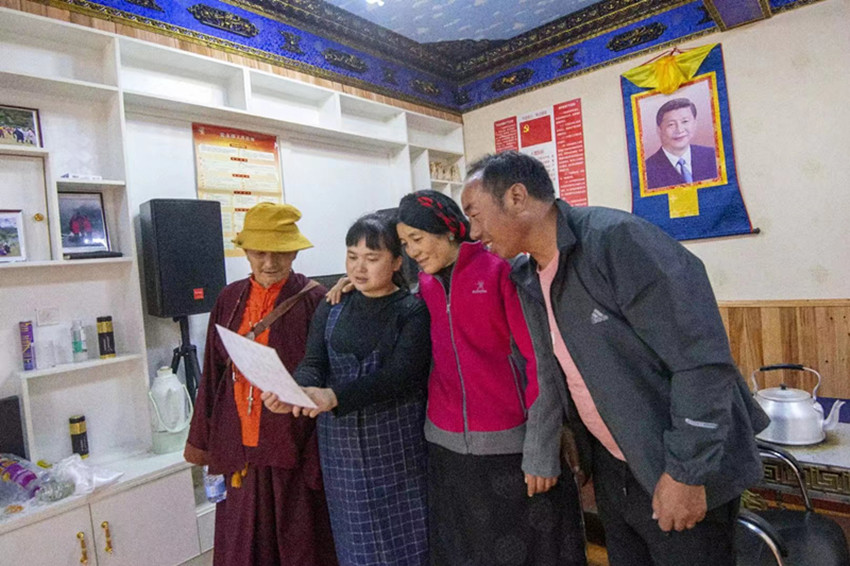 由于沒(méi)有到蟲(chóng)草季節(jié),村民說(shuō)沒(méi)有什么能拿得出手送我的,說(shuō)是等挖了蟲(chóng)草給我寄一點(diǎn),我受了這么大的苦難,要好好補(bǔ)補(bǔ)身體。村支書(shū)澤下,簡(jiǎn)單地給大家說(shuō)了我即將離開(kāi),說(shuō)了我在醫(yī)院住了四個(gè)多月,說(shuō)了我這兩年為大家修房子、募捐、結(jié)對(duì)子等等。我站在哈巴村活動(dòng)中心門(mén)口,每個(gè)人都排著隊(duì)為我獻(xiàn)著哈達(dá),邊為我戴上邊哭,我也忍不住哭了起來(lái)。哈達(dá)實(shí)在太多了,我也帶不走,就放在了村上。有一個(gè)老奶奶,叫澤仁拉呷,是我結(jié)對(duì)子的貧困戶(hù),她揣著一張100塊錢(qián),一定要給我,叫我收下。100塊錢(qián),對(duì)于我來(lái)說(shuō)并不多,對(duì)于村里的貧困戶(hù)來(lái)說(shuō),那是要賣(mài)好多斤土豆才能賣(mài)到的錢(qián),我當(dāng)然沒(méi)有收,拿給她了,我看到她一直哭,心里酸酸的。是的,短暫的兩年駐村時(shí)光,為他們做的太少太少了,他們卻把我當(dāng)親人一樣,記掛著,關(guān)心著,心疼著。