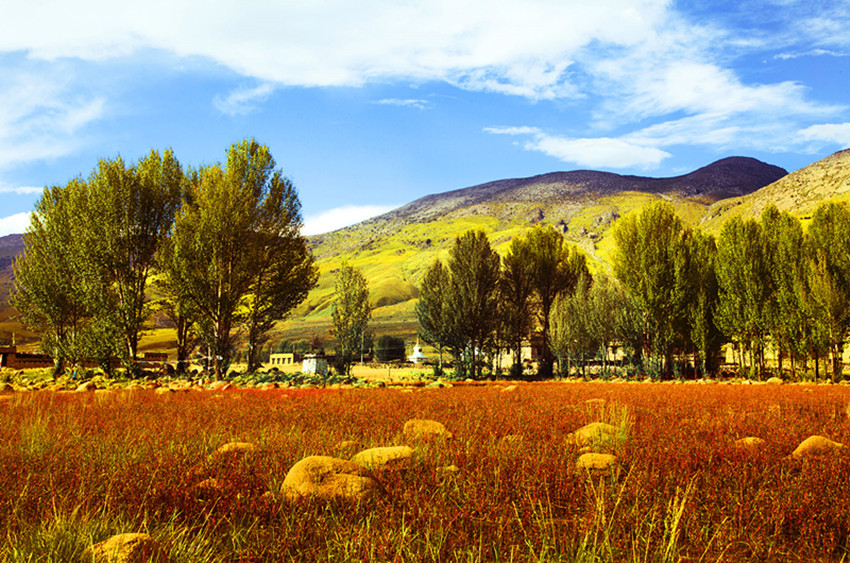 紅草地,“三祜主”鐘愛的一方小天地,猶如鑲嵌在亞丁仙境胸前的一顆紅寶石。