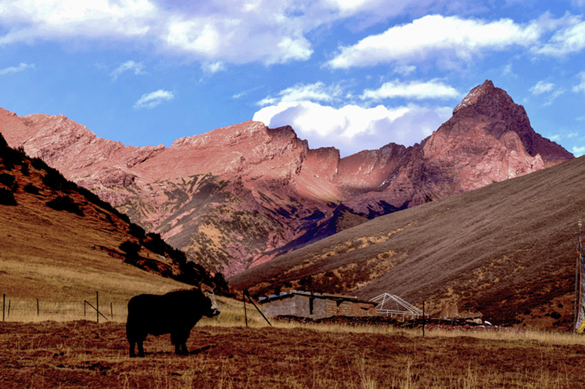 我這次,正好就走近了紅色的山,走進了青藏東南緣橫斷山北部、康巴高原新龍的紅山懷抱,它藏名叫“絨多巴日”,當?shù)厝硕己喎Q它紅山,也稱它為銅色吉祥山或蓮花生銅色光明宮。