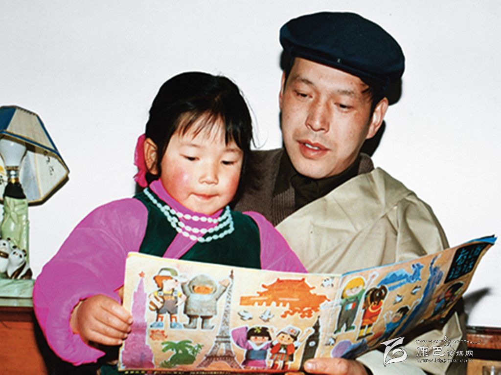 女兒遺傳了父親的基因,也有賴于她的成長天地有著得天獨厚的自然和文化。遼闊曠達(dá)的川藏高原,跑馬溜溜的山下,是她康定小城的家。茂林蔥蘢、碧草綿延,湖光山色間是一家三口的樂園。爸爸媽媽帶著意娜,常常趴在草叢里看螞蟻搬家,奔跑在天地間感受萬物生長,到半山腰的寺院里看墻上精美的壁畫、聽喇嘛誦經(jīng)……神奇的自然奧秘與古老的民族文化,通過她的感官和父母的講述滋養(yǎng)著這個藏族女孩。