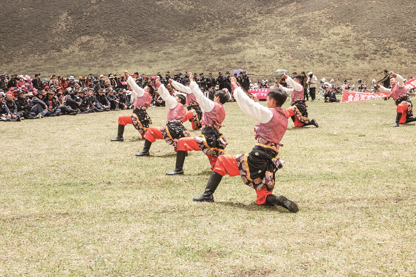 前兩年我看到甘孜縣由陳幫文和他女兒陳娟以及甘孜縣新一代踢踏編導白嘎共同編導了一個名叫《傳鈴》的踢踏舞,講的就是甘孜踢踏如何在他們的手中,一代代傳承的故事,聽說這個舞蹈在省、州的比賽中都獲得了大獎,我不是搞舞蹈的,我對舞蹈沒有發(fā)言權,但僅從文化的傳承來說,這不就充分說明了我們民族文化的生生不息嗎?甘孜踢踏從當年的行轅衛(wèi)隊走向甘孜群眾,從少數人的傳跳,到今天數百兒童的表演,踢踏舞在甘孜這塊土地上不斷的生根、發(fā)芽、開花、結果,正一步步走向新的起點。