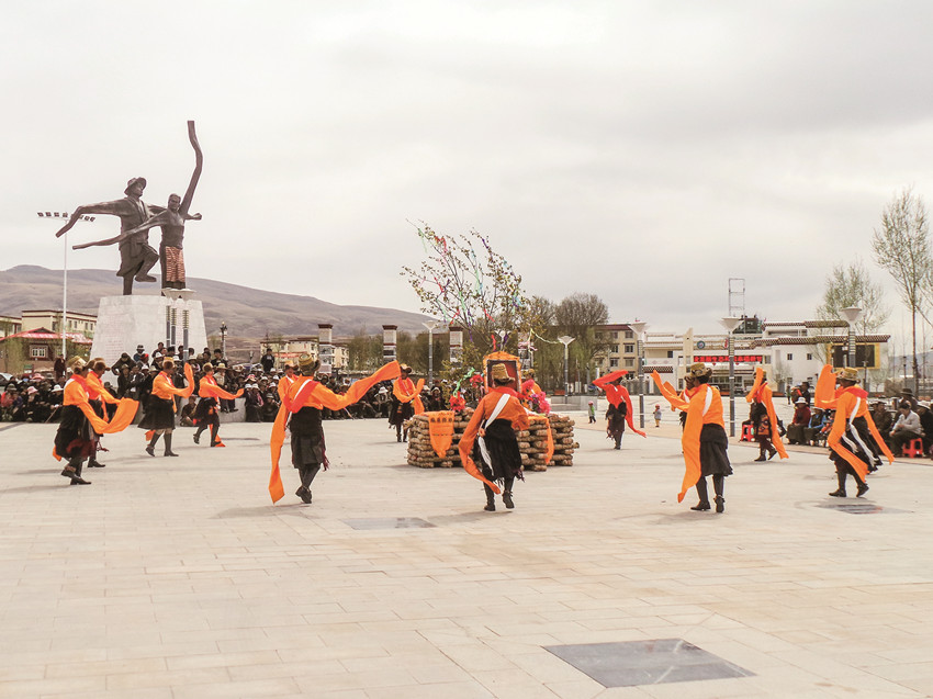 座落在雅礱江畔的甘孜縣,春天是十分美麗的,當江水解除冰凍,大山披綠的時候,會聽到滿山的布谷鳥鳴唱,草原上鮮花盛開。踢踏舞動的銅鈴聲極像草原吟唱的歌喉,讓人聞之心醉,醉在那走向春天的踢踏。