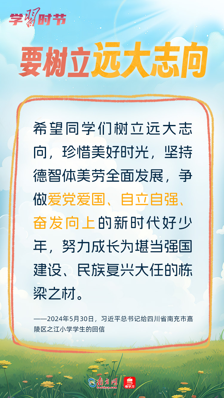 5月30日,在“六一”國(guó)際兒童節(jié)即將到來(lái)之際,中共中央總書(shū)記、國(guó)家主席、中央軍委主席習(xí)近平給四川省南充市嘉陵區(qū)之江小學(xué)的學(xué)生們回信,對(duì)他們予以親切勉勵(lì),并祝他們和全國(guó)的少年兒童節(jié)日快樂(lè)。