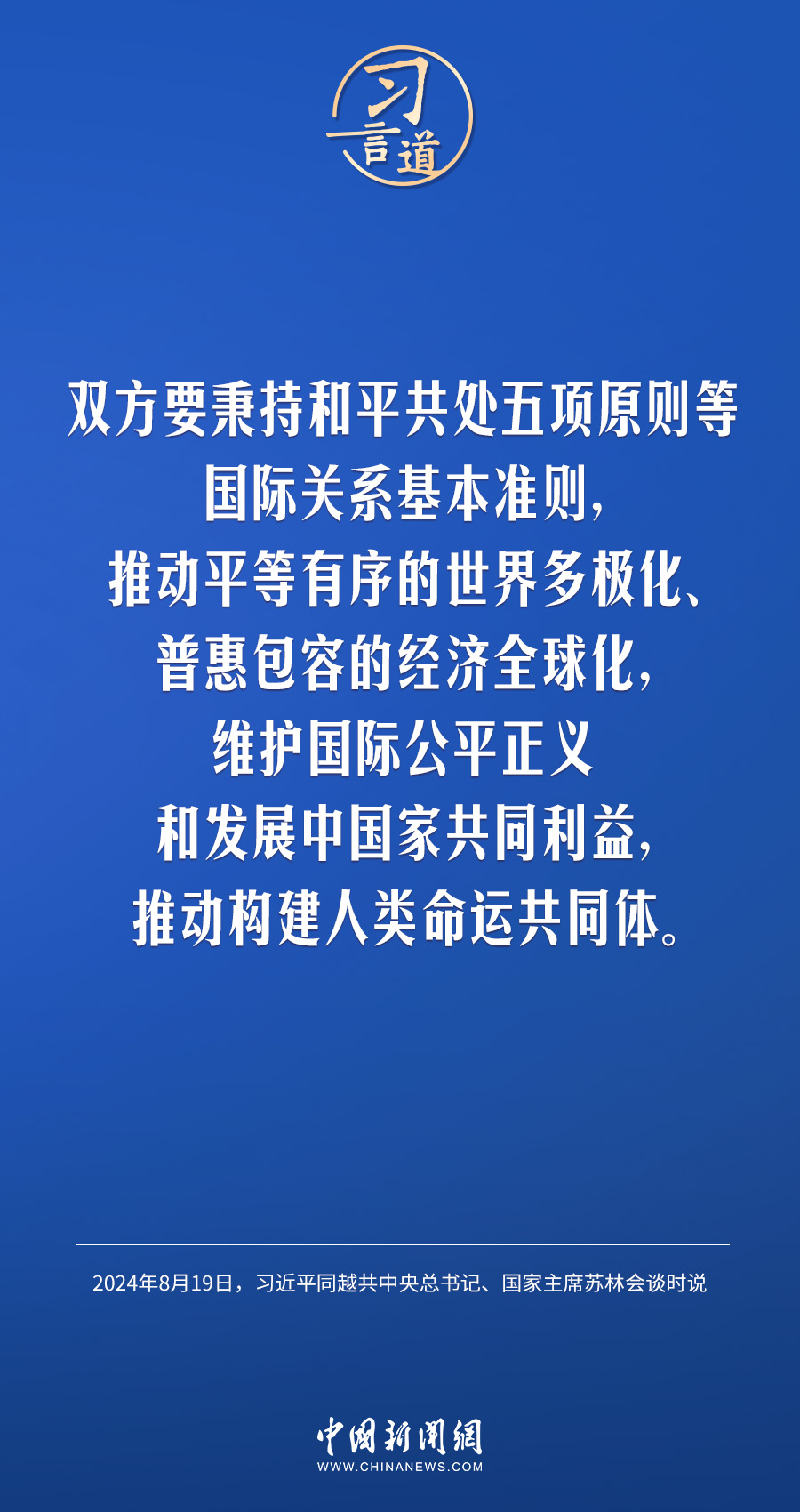 8月19日,中共中央總書記、國家主席習近平在北京人民大會堂同來華進行國事訪問的越共中央總書記、國家主席蘇林舉行會談。習近平指出——