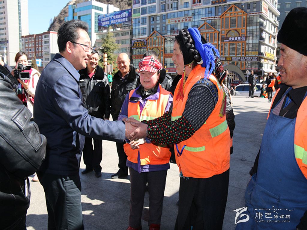 本網(wǎng)訊(記者 秦松 文/圖) 在春節(jié)和藏歷新年即將來臨之際,情歌故鄉(xiāng)康定城艷陽高照,大街小巷處處洋溢著節(jié)日的氣氛。2月17日,州委副書記、州政府州長益西達(dá)瓦帶著新春的祝??赐繂柫丝刀h市政管理人員和環(huán)衛(wèi)工人、新華書店職工,并深入到康定縣郭達(dá)橋農(nóng)貿(mào)市場調(diào)研商品供銷情況。