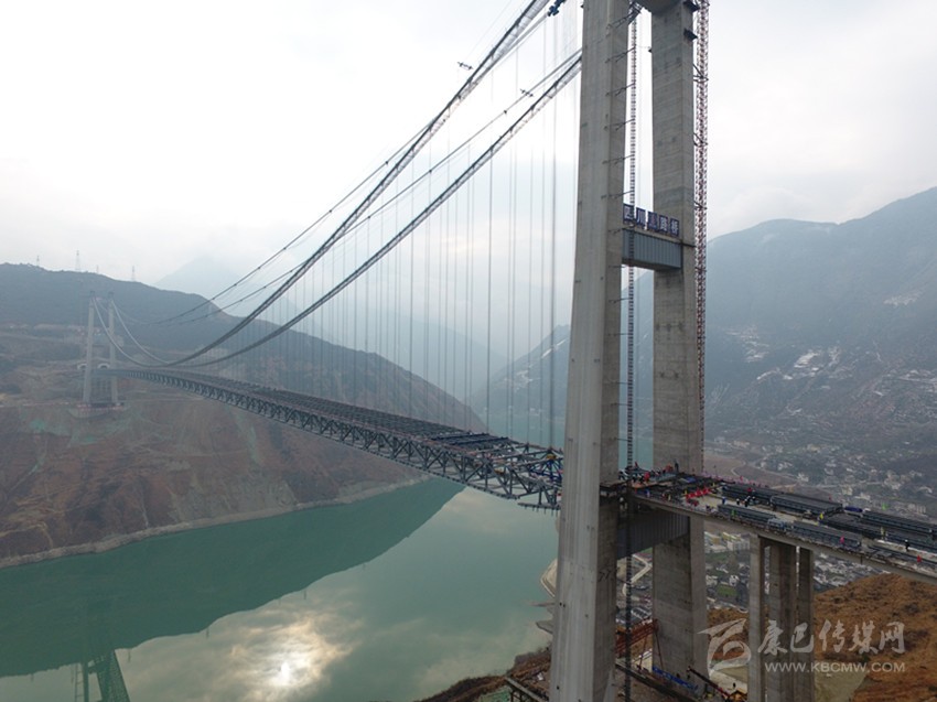 網(wǎng)訊(余秋林 張皓瑜 記者 肖宵 文/圖)2月6日早上,冬陽透過薄霧灑落在大渡河面,在瀘定縣瀘定橋上游5公里處,兩座橋墩直入云端,由鋼桁梁組成的巨大“龍骨”凌空橫跨河面,這項(xiàng)雅康高速公路的“超級(jí)工程”即將迎來蛻變。
