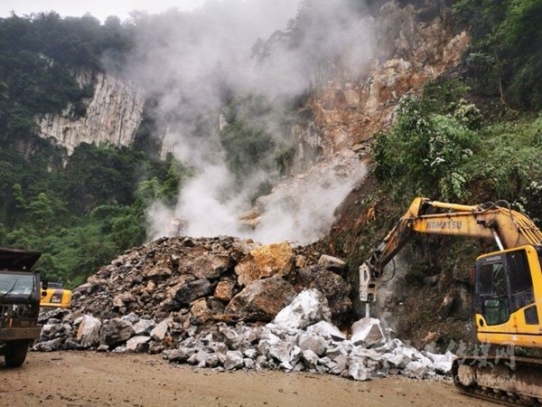 周宗海說,為搶通中斷路段,珙縣自然資源和規(guī)劃局于18日中午一點開始,組織機(jī)具10余臺 ,人員20余人進(jìn)行連續(xù)加班作業(yè),對垮塌巖體進(jìn)行爆破、清運,清理碎石約15000噸,于19日晚上十點搶通了該路段。