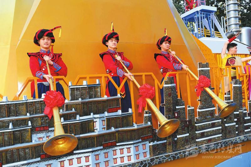 當(dāng)天中午12時(shí)25分,四川彩車緩緩駛?cè)胩彀查T核心檢閱區(qū)。金山銀山、新能源頁巖氣開發(fā)、核電技術(shù)華龍一號(hào)、金沙太陽神鳥圖案、“四水澤川”的江流……映入眼簾的四川彩車造型大方雅致、色彩明快熱烈,音樂、茶藝、舞蹈和雕塑結(jié)合,傳遞出一股震撼人心的力量。行進(jìn)至檢閱區(qū),左右兩側(cè)的展演人員微笑揮手,手執(zhí)彝族長(zhǎng)號(hào)的小伙由下向上,將號(hào)頭仰天直對(duì)車頭,傳達(dá)出四川兒女對(duì)祖國(guó)的祝福。