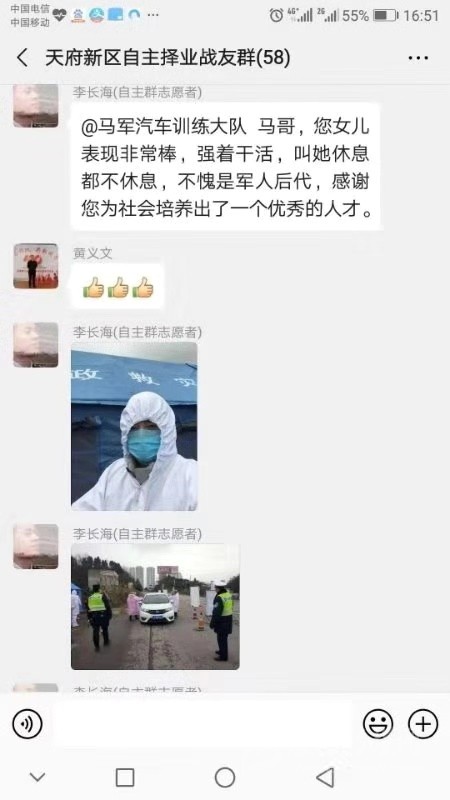 “我給我女兒報(bào)名,馬相汶,女,25歲,大學(xué)畢業(yè),北京工作,現(xiàn)滯留成都,另我回去后接她的班。”近日,一條微信截圖傳遍了天府新區(qū)退役軍人的朋友圈。