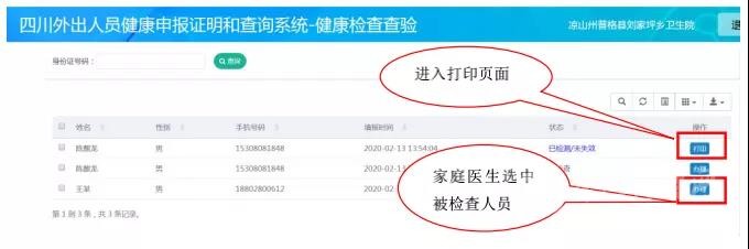 所有在選定醫(yī)院或衛(wèi)生院檢查的外出人員信息一覽表: