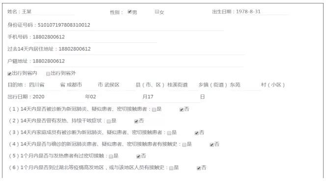 (二)服務(wù)內(nèi)容。居住地醫(yī)療衛(wèi)生機(jī)構(gòu)對(duì)申報(bào)人在開展流行病學(xué)史調(diào)查、測(cè)量體溫的基礎(chǔ)上,為符合條件的申報(bào)人出具《四川外出人員健康申報(bào)證明》。