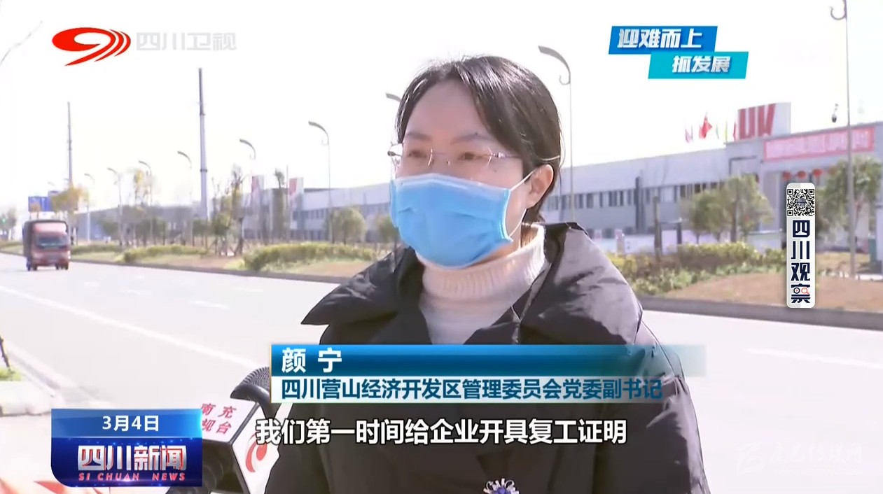 四川營山經(jīng)濟開發(fā)區(qū)管理委員會黨委副書記 顏寧:我們第一時間給企業(yè)開具復工證明,并協(xié)調(diào)發(fā)改(部門),開具這個快速通行證,協(xié)調(diào)那個社區(qū),給他們開具那個健康證明,確保企業(yè)的產(chǎn)品能夠第一時間運出去。