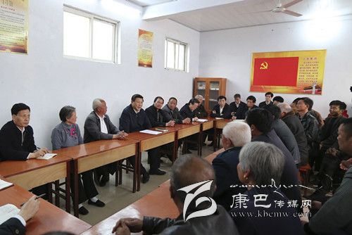 3月17日,習(xí)近平在東壩頭鄉(xiāng)張莊村村委會與干部群眾座談,聽取意見和建議。