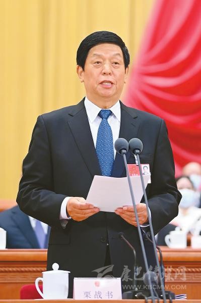 大會主席團常務主席、執(zhí)行主席栗戰(zhàn)書主持大會。新華社記者 申宏 攝