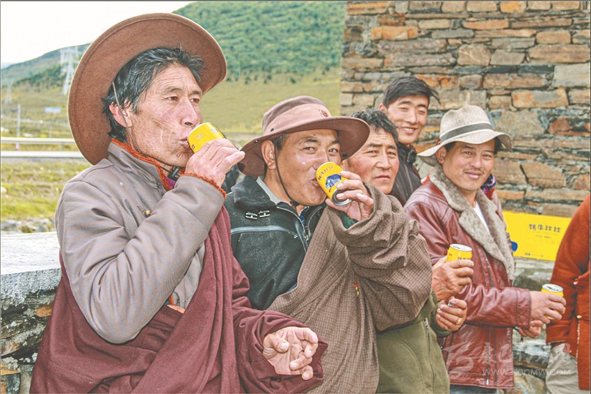 8月9日,格德措姆為騎友倒酥油茶。四川日?qǐng)?bào)全媒體記者 衡昌輝 攝