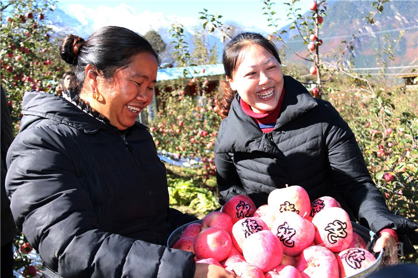 蘋(píng)果豐收,瀘定果農(nóng)笑了。