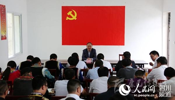 四川省人民政府副秘書長、辦公廳主任陳彥夫帶隊到通坪村開展主題教育調研講授專題黨課。四川省人民政府辦公廳供圖