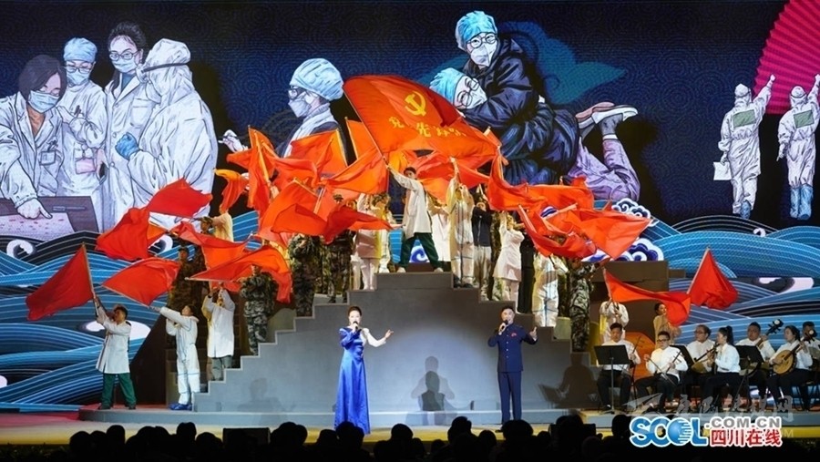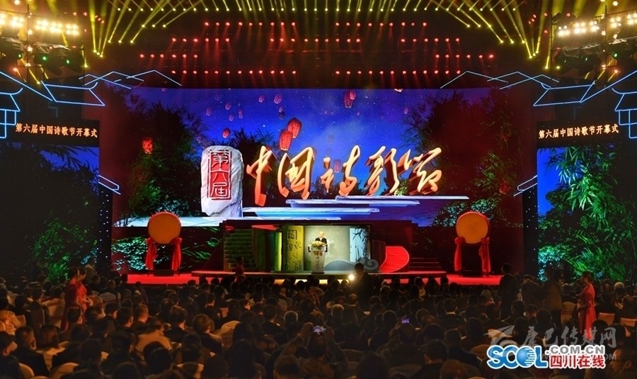 19時30分許,在催人奮進的陣陣鼓聲中,開幕式正式開始。胡和平在致辭中表示,第六屆中國詩歌節(jié)在四川省和重慶市兩地一同舉辦,是落實黨中央推動成渝地區(qū)雙城經(jīng)濟圈建設(shè)決策部署的務(wù)實之舉,也是以文化繁榮為經(jīng)濟社會高質(zhì)量發(fā)展賦能助力的務(wù)實之舉。剛剛閉幕的十九屆五中全會把文化建設(shè)放在突出位置,明確“十四五”時期文化建設(shè)目標(biāo)要求,提出到2035年建成文化強國的遠景目標(biāo)。廣大文藝工作者要以習(xí)近平總書記關(guān)于文藝工作的重要論述精神為遵循,貫徹落實黨中央關(guān)于文化工作的各項決策部署,堅持以人民為中心的創(chuàng)作導(dǎo)向,堅持與時代同步伐,發(fā)時代之先聲、頌時代之精神,用心用情用功抒寫偉大時代,推出更多謳歌黨、謳歌祖國、謳歌人民、謳歌英雄的精品力作,推動社會主義文化繁榮興盛,為實現(xiàn)中華民族偉大復(fù)興中國夢凝聚文化力量。