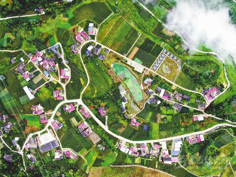 2020年8月17日海子坪村航拍。甘孜州瀘定縣海子坪村打造的“高科農(nóng)技+高端民宿”吸引了眾多游客前來(lái)觀光旅游,村民的生活也發(fā)生著美麗的蛻變。 四川日?qǐng)?bào)全媒體記者衡昌輝攝
