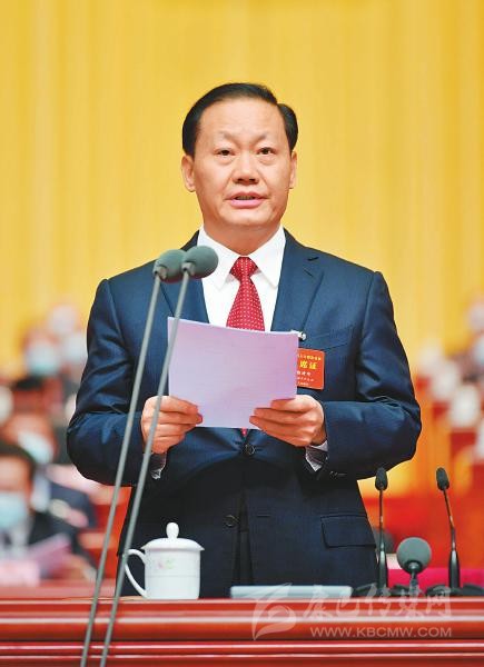 黃強(qiáng)代表省人民政府作工作報(bào)告。