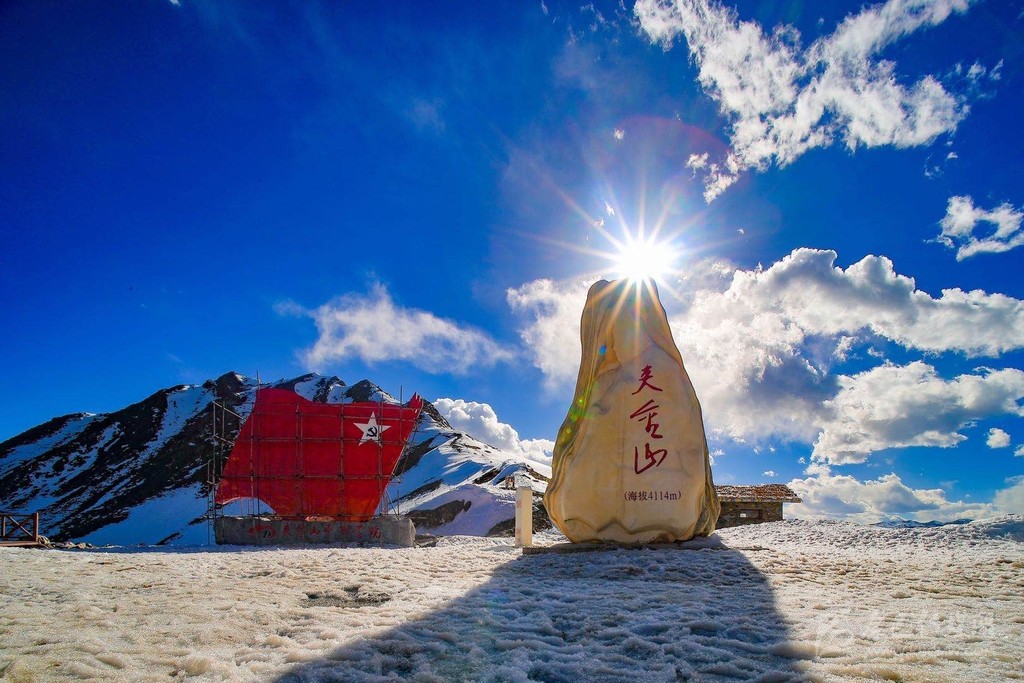 紅軍長征翻越夾金山紀(jì)念地被白雪覆蓋的石碑