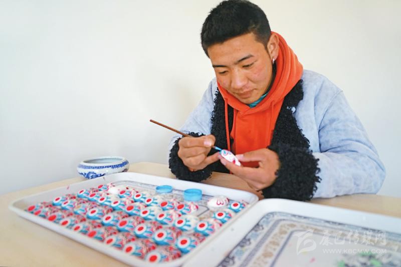 本著自主自愿的原則,教學(xué)班結(jié)束后,65名藏族青年主動(dòng)加入扶貧彩繪實(shí)訓(xùn)班,成為項(xiàng)目的第一批學(xué)員?!皩?shí)訓(xùn)期間不需要交任何費(fèi)用,還包吃住。我對(duì)畫(huà)京劇臉譜很有興趣,我們第一個(gè)月學(xué)習(xí)繪畫(huà)基本功,第二個(gè)月開(kāi)始,根據(jù)成品質(zhì)量,就可以計(jì)件得酬勞,學(xué)習(xí)期間我每月能掙500多元?!壁雠f(shuō)。