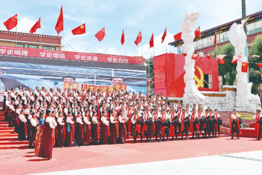 中國共產(chǎn)黨成立以來的一百年,是中國人民根本改變歷史命運的一百年,是中華民族走向偉大復興的一百年,是中國為全人類發(fā)展作出卓越貢獻的一百年。中國共產(chǎn)黨團結(jié)帶領(lǐng)中國人民走過的光輝歷程,是用鮮血、汗水、淚水寫就的,充滿著苦難和輝煌、曲折和勝利、付出和收獲,是中華民族發(fā)展史上的壯麗篇章。中國共產(chǎn)黨領(lǐng)導中國人民取得的偉大勝利,讓中華文明在現(xiàn)代化進程中煥發(fā)出新的蓬勃生機,讓科學社會主義在21世紀煥發(fā)出新的蓬勃生機,讓中華民族煥發(fā)出新的蓬勃生機,是中國人民和中華民族繼往開來、奮勇前進的現(xiàn)實基礎(chǔ)。