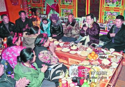 “開展群眾工作以來,大家在思想上發(fā)生了很大變化,不像過去比誰的房子大、誰耍得好,現(xiàn)在比的是誰家培養(yǎng)了幾個(gè)大學(xué)生、掙了多少錢。”道孚縣鮮水鎮(zhèn)農(nóng)民謝康生說,“這兩年,胡書記每年都和我們一起過春節(jié),我們很高興。”今年1月27日,農(nóng)歷臘月二十七,州委書記胡昌升冒著嚴(yán)寒,來到道孚縣與謝康生等六戶結(jié)對的藏族“親戚”歡慶新春、共度新年。