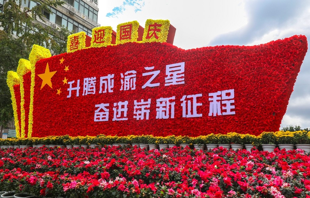 花團(tuán)錦簇、紅旗飄飄……在遂寧,主要街道及重點(diǎn)區(qū)域紛紛懸掛鮮艷的五星紅旗,形成一片片“紅色的海洋”,洋溢著濃濃的節(jié)日氛圍。