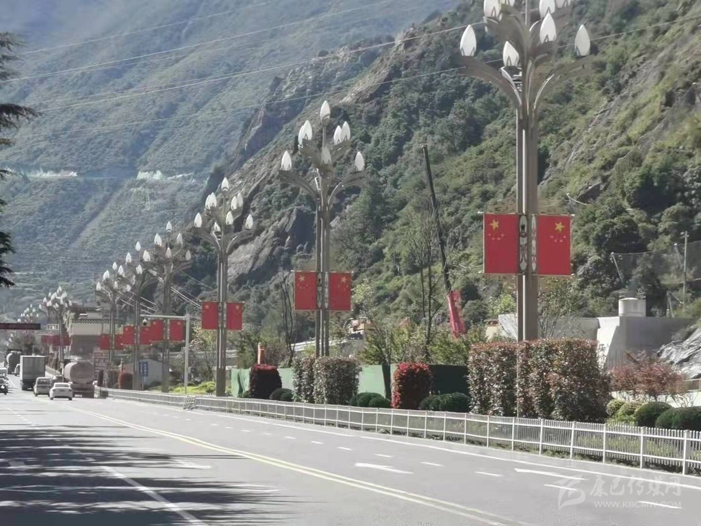 在樂山市,為營(yíng)造喜慶、熱烈、歡樂、祥和的節(jié)日氛圍,中心城區(qū)嘉定路、柏楊路等多條主干道,以及樂山岷江一橋和二橋共計(jì)1217柱燈桿上,懸掛了2000多面國(guó)旗,換上“紅裝”后的街道,在藍(lán)天的映襯下顯得格外美麗。