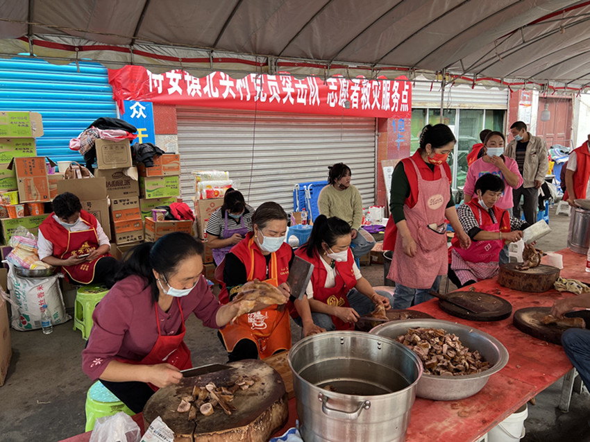 圖為志愿者在做飯。