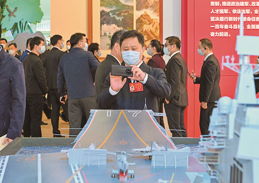 10月17日晚,參加黨的二十大的代表們來到北京展覽館參觀“奮進新時代”主題成就展。 新華社記者 陳益宸 攝