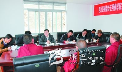 “我們這次來的目的就是想和大家交流,聽聽五明佛學院有什么困難,有什么需要黨委、政府支持的。”一走進寺院,胡昌升便道出了此行目的。他說,僧尼是基本群眾、寺廟是基本社會單元。黨委、政府應該關心所有的僧尼和寺廟,但寺廟也要履行好自己的責任和義務,真正把五明佛學院管得有序,讓這里的僧眾在文明和諧的氛圍中提高自己的佛學水平。