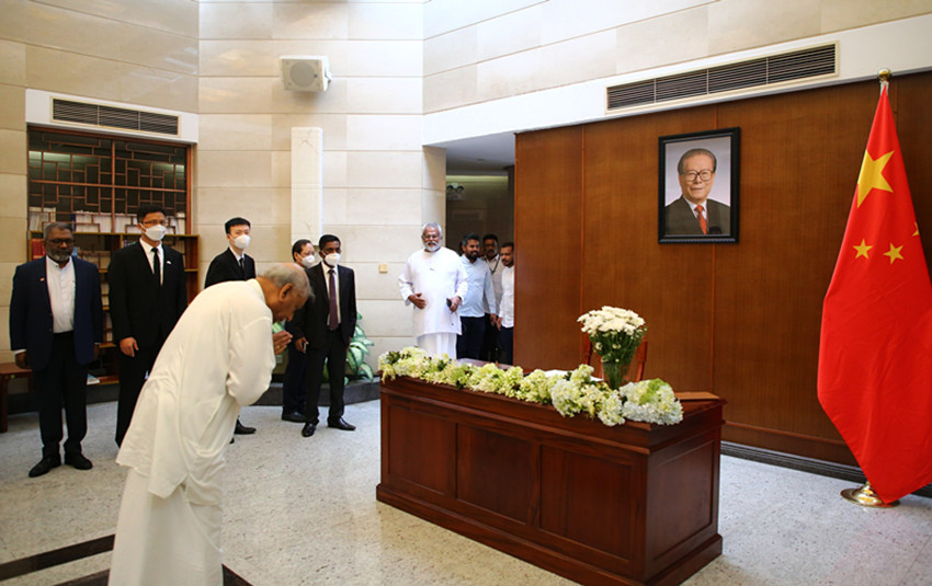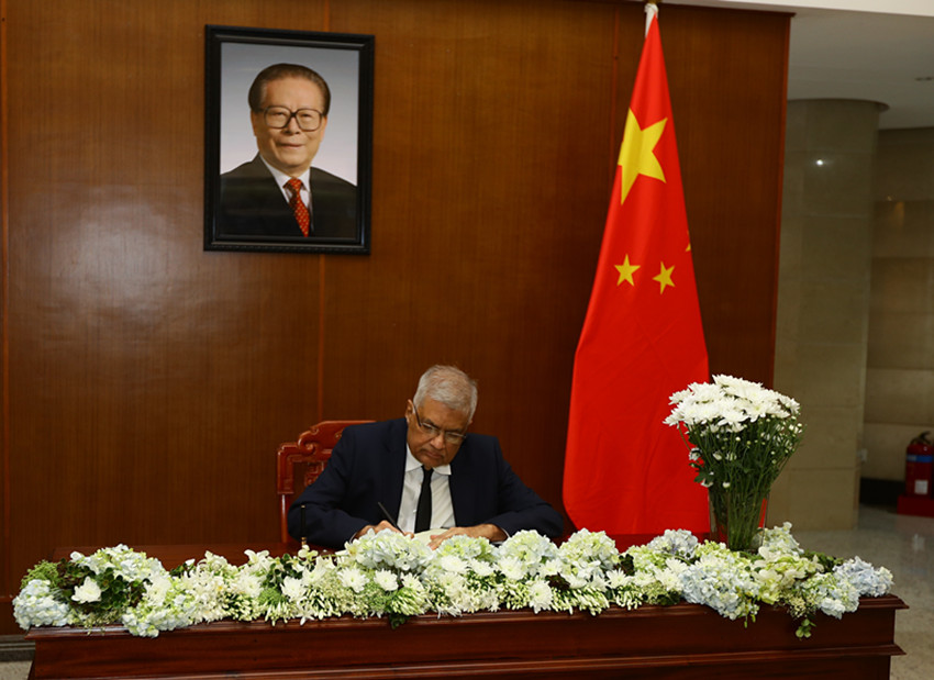 十二月二日,斯里蘭卡總統(tǒng)維克拉馬辛哈在中國駐斯里蘭卡大使館吊唁江澤民同志。 薩米拉 攝(新華社 發(fā))