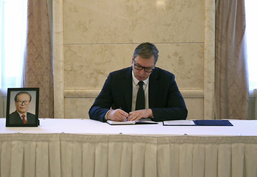 12月3日,塞爾維亞總統(tǒng)武契奇在中國駐塞爾維亞大使館吊唁江澤民同志。 中國駐塞爾維亞大使館供圖(新華社 發(fā))