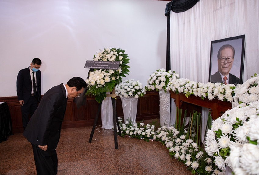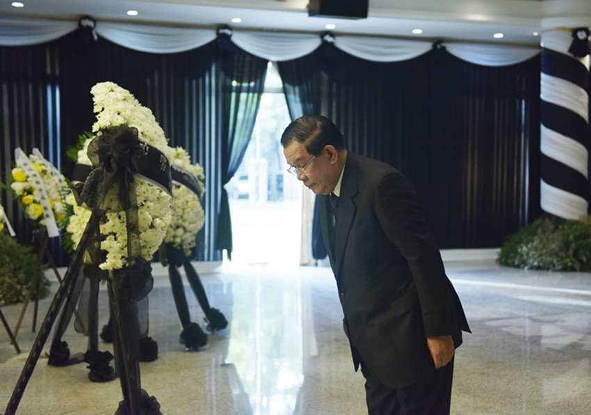 12月5日,柬埔寨首相洪森在中國駐柬埔寨大使館吊唁江澤民同志。 萬坡 攝(新華社 發(fā))