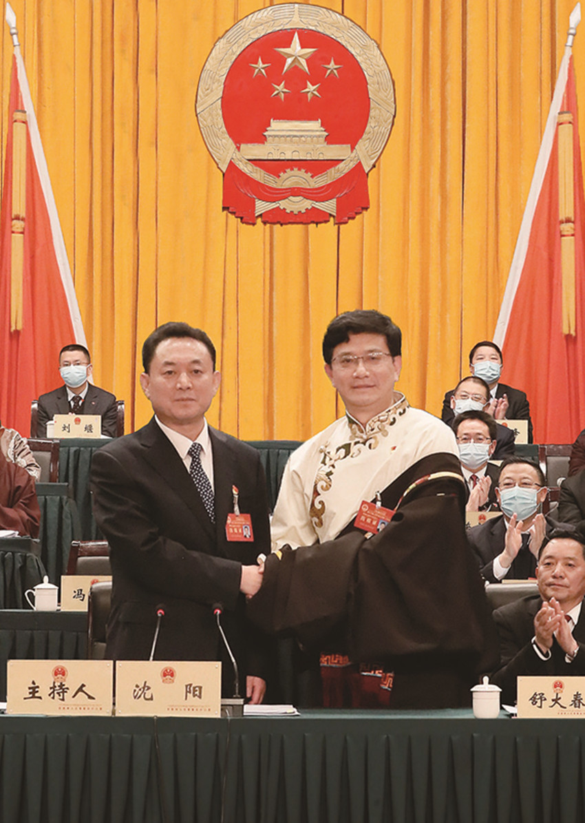 州十三屆人大常委會(huì)第四次會(huì)議上,舒大春向被任命人員頒發(fā)任命書。