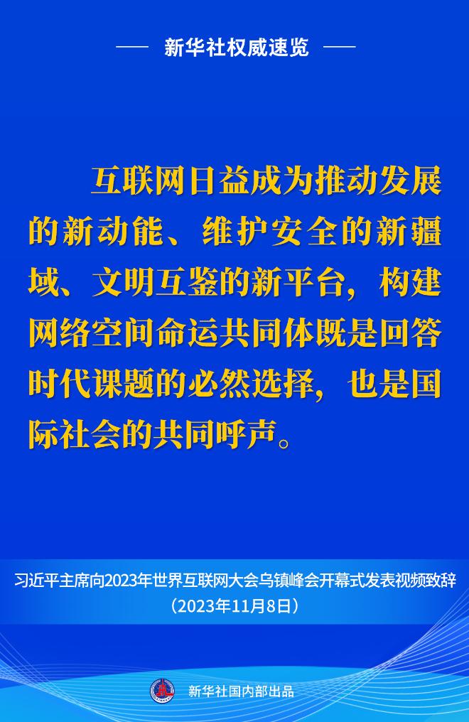 11月8日上午,國(guó)家主席習(xí)近平向2023年世界互聯(lián)網(wǎng)大會(huì)烏鎮(zhèn)峰會(huì)開(kāi)幕式發(fā)表視頻致辭。一起來(lái)看金句。