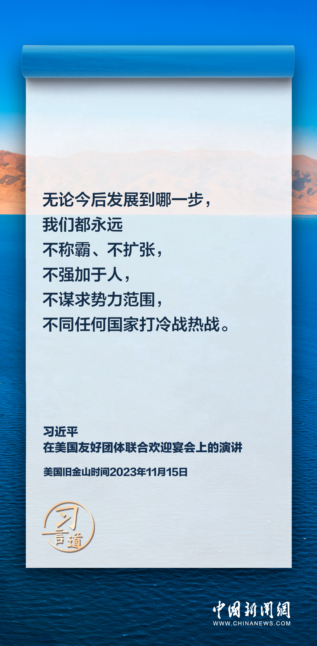 當(dāng)?shù)貢r(shí)間11月15日,中國(guó)國(guó)家主席習(xí)近平在美國(guó)舊金山出席美國(guó)友好團(tuán)體聯(lián)合歡迎宴會(huì)并發(fā)表演講。習(xí)近平在演講中從“我”和“我們”說起,提出中國(guó)主張、表明中國(guó)立場(chǎng)、展現(xiàn)大國(guó)擔(dān)當(dāng),話語(yǔ)擲地有聲。