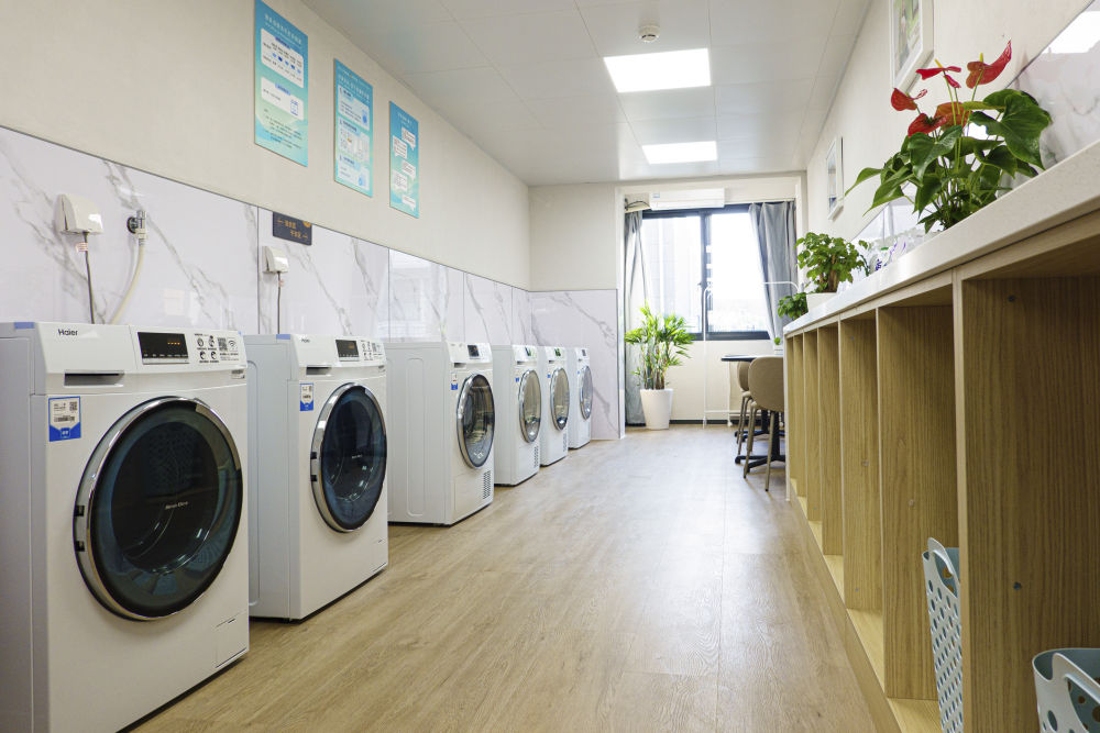 閔行區(qū)新時代城市建設者管理者之家的共享廚房和共享洗衣房。
