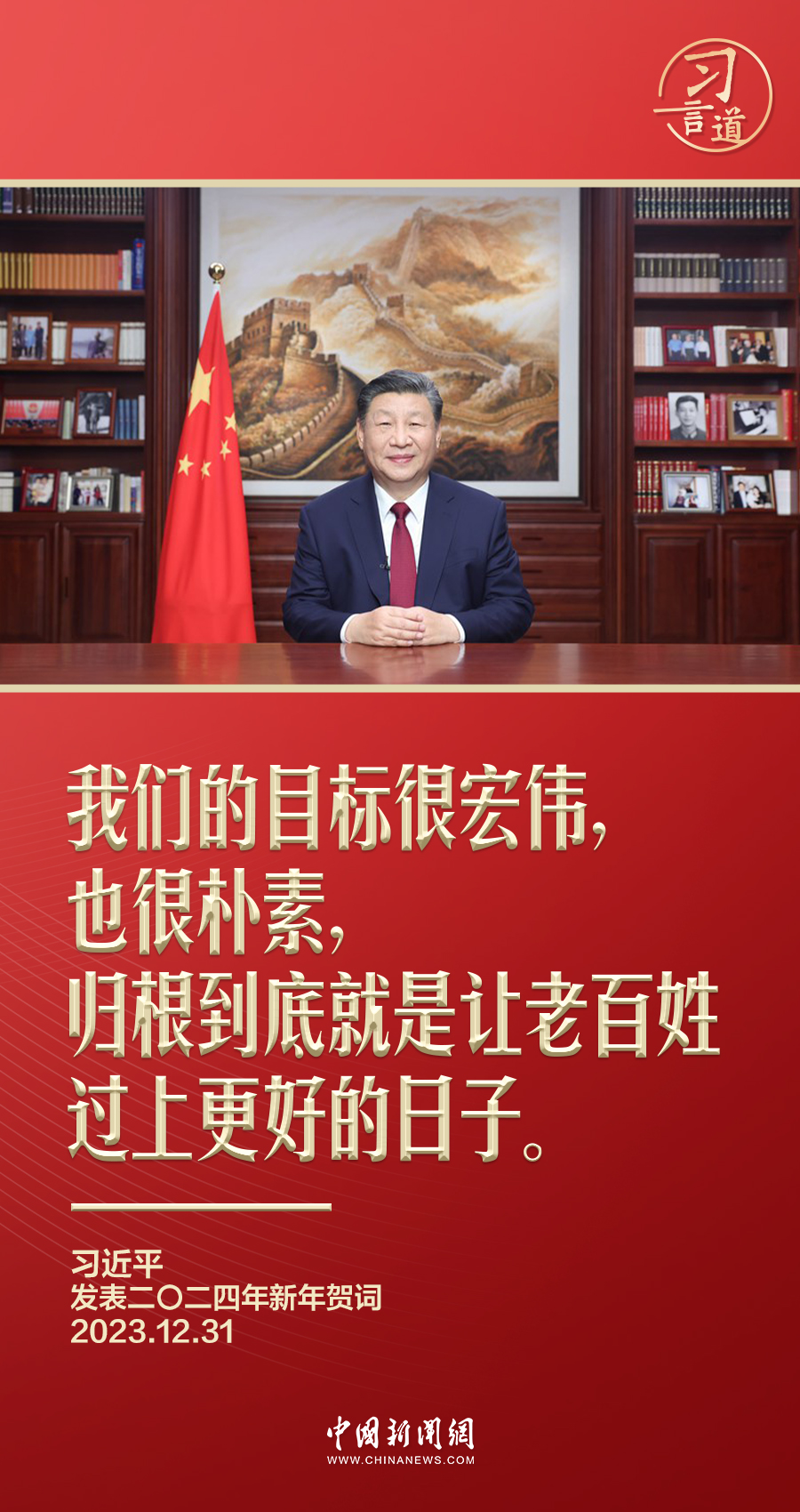 無(wú)數(shù)點(diǎn)滴奮斗匯聚成不斷向前的力量。在二〇二四年新年賀詞里,習(xí)主席為百姓充盈的生活點(diǎn)贊,稱(chēng)這些“詮釋了人們對(duì)美好幸福的追求,也展現(xiàn)了一個(gè)活力滿(mǎn)滿(mǎn)、熱氣騰騰的中國(guó)”。