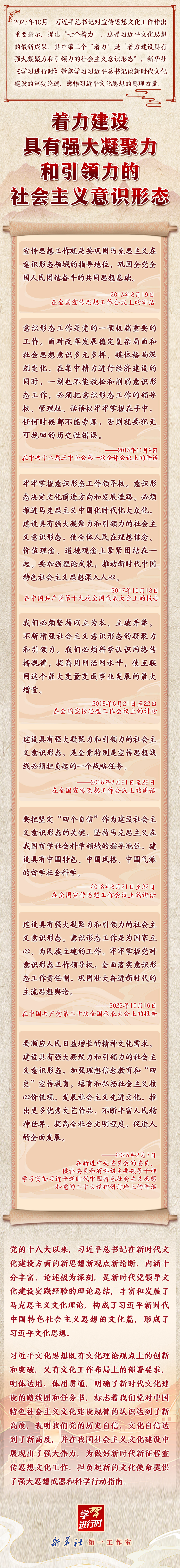 學(xué)習(xí)進(jìn)行時(shí)丨領(lǐng)悟習(xí)近平文化思想系列之二:著力建設(shè)具有強(qiáng)大凝聚力和引領(lǐng)力的社會(huì)主義意識(shí)形態(tài)